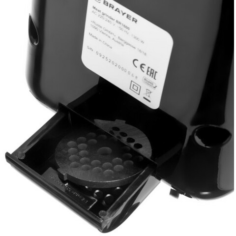 мощность: 600 Вт, производительность: 1.5 кг/мин, система реверса: есть, насадки: диск для фарша, материал корпуса: пластик/металл, особенности: прорезиненные ножки, отсек для хранения насадок