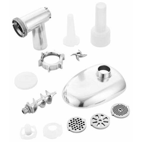 перерабатывает 0.75 кг/мин, насадка для приготовления колбас, насадка для кеббе, диск для фарша, сделана из пластика и металла
