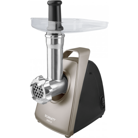 перерабатывает 2.5 кг/мин, насадка-терка, насадка для приготовления колбас, насадка для шинковки, насадка для кеббе, диск для фарша, корпус из пластика