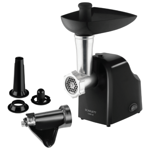 Бренд: Scarlettпроизводительность: 2 кг/мин, система реверса, максимальное время непрерывной работы: 7 мин, насадки: насадка для приготовления колбас, насадка для кеббе, диск для фарша, материал корпуса: пластик, тип соковыжималки: шнековая, прорезиненные ножки