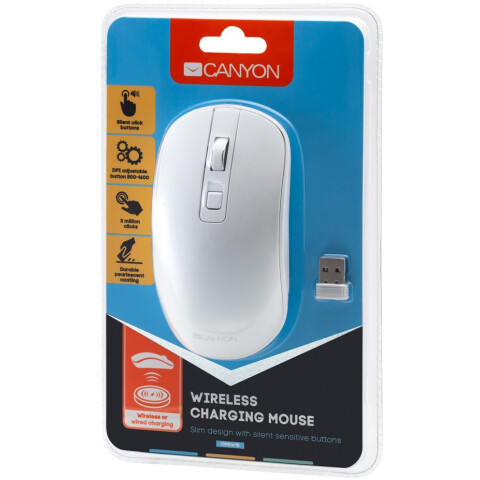 оптическая, беспроводная (радиоканал), 1600 dpi, USB, цвет: белый