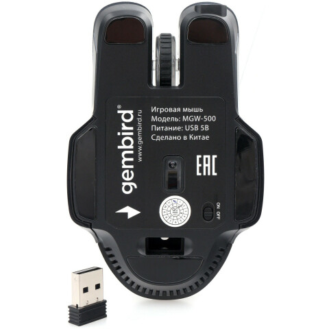 Бренд: Gembirdоптическая, беспроводная (радиоканал), 2400 dpi, USB, цвет: серый