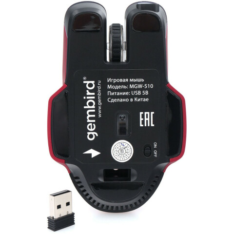 Бренд: Gembirdоптическая, беспроводная (радиоканал), 2400 dpi, USB, цвет: красный