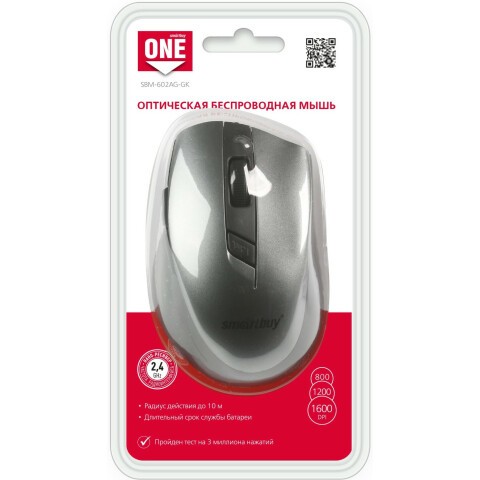 оптическая, беспроводная (радиоканал), 1600 dpi, USB, цвет: серый, чёрный
