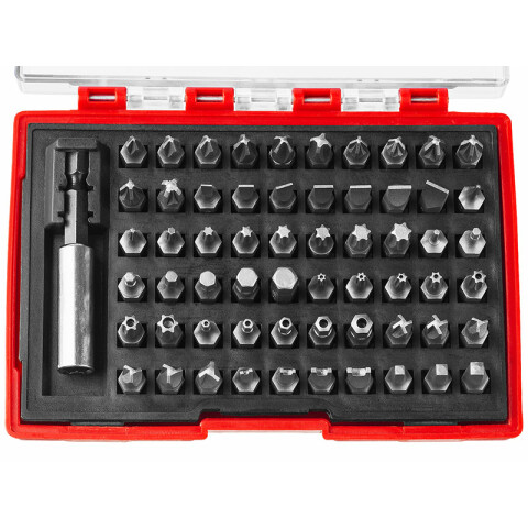 набор бит для шуруповёртов: 60 бит PH/PZ/SL/TX/HEX/TX HOLE/HEX HOLE/TORQ SET/TRI-WING/DOUBLE PIN/ROBERTSON