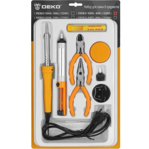 Бренд: DEKOнабор для пайки, форма жала: конус, мощность: 40 Вт, напряжение: 220 В