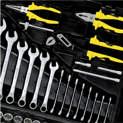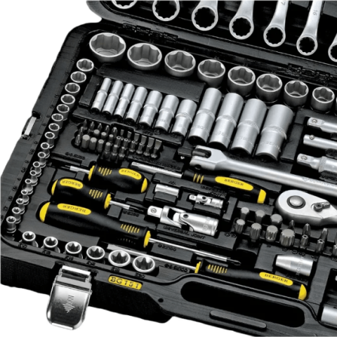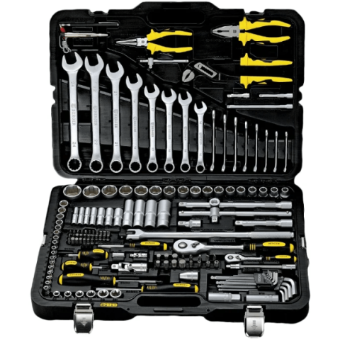 набор инструментов универсальный, количество предметов: 151, отвертки, 4 шт, биты, 29 шт, гаечные ключи, 16 шт, торцевые головки, 49 шт, пассатижи, кейс в комплекте