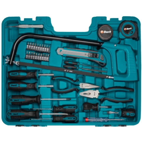 ножовка по металлу; напильник; отвертка-держатель для бит; отвертка; длинногубцы; плоскогубцы; тестер; молоток; ключ разводной; биты 25 мм; головки 1/4; изолента; рулетка; пинцет