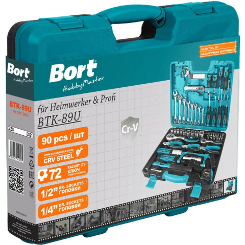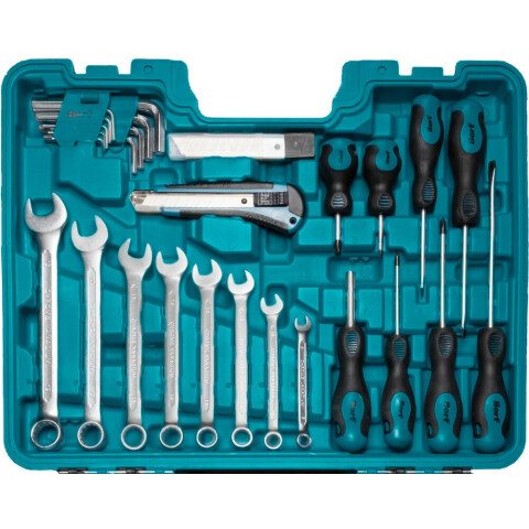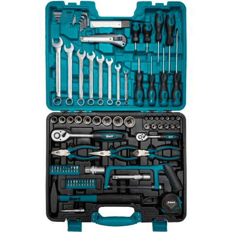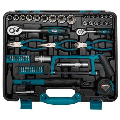 Бренд: Bortключ гаечный комбинированный; отвертки; отвертка-держатель для бит; бокорезы; плоскогубцы; длинногубцы; нож; ножовка по металлу; молоток слесарный; удлинитель квадрат; головка свечная; рукоятка с трещеткой; биты 20 шт; рулетка; лезвия для ножа