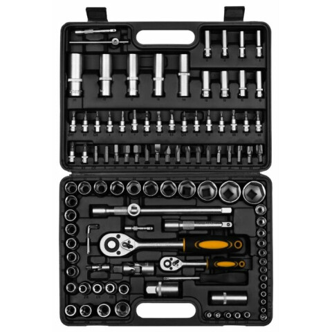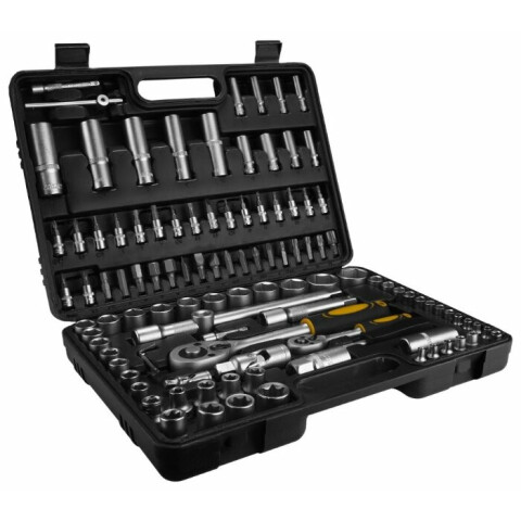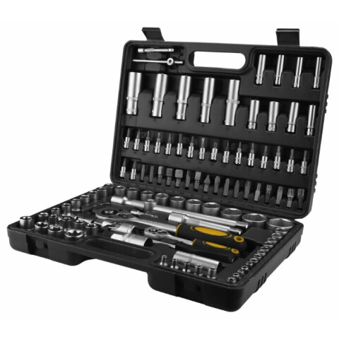 инструменты: трещотка, ключи имбусовые (шестигранные), оснастка: биты, торцевые головки, биты с головками, количество бит: 17 шт., количество торцевых головок: 58 шт., вес набора 6.5 кг