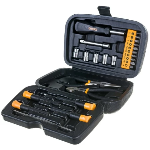 универсальный набор инструментов, количество предметов в наборе: 25 шт, размер торцевых головок: 7-12 мм, кейс