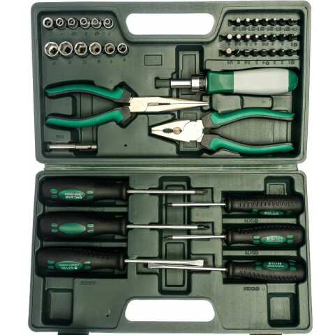 универсальный набор инструментов, количество предметов в наборе: 45 шт, размер торцевых головок: 4-13 мм, кейс