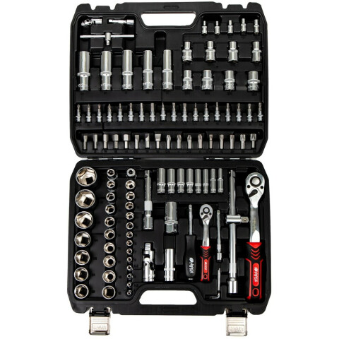 отвертка-держатель, головки-биты, торцевые головки, удлинители 1/4, удлинители 1/2, карданы, трещотки, вороток Т-образный, свечные головки, адаптер для воротка, ключи шестигранные