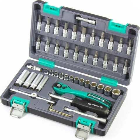 автомобильный набор инструментов, количество предметов в наборе: 47 шт, присоединительный размер: 1/4", размер торцевых головок: 4-14 мм, кейс