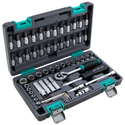 автомобильный набор инструментов, количество предметов в наборе: 57 шт, присоединительный размер: 1/4", размер торцевых головок: 4-14 мм, кейс