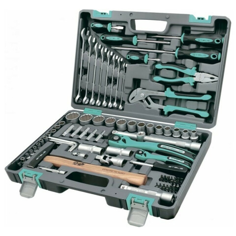 автомобильный набор инструментов, количество предметов в наборе: 76 шт, присоединительный размер: 1/2", 1/4", размер торцевых головок: 4-32 мм, кейс
