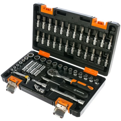 автомобильный набор инструментов, количество предметов в наборе: 57 шт, присоединительный размер: 1/4", размер торцевых головок: 4-14 мм, кейс