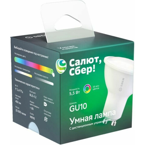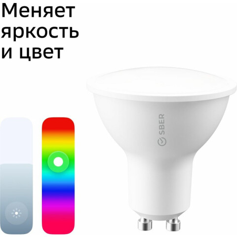 умная лампочка, цоколь GU10, мощность 5.5 Вт, цветовая температура 2700-6500 K, световой поток 450 Лм, поддержка RGB, управление: Wi-Fi, до 25000 ч работы