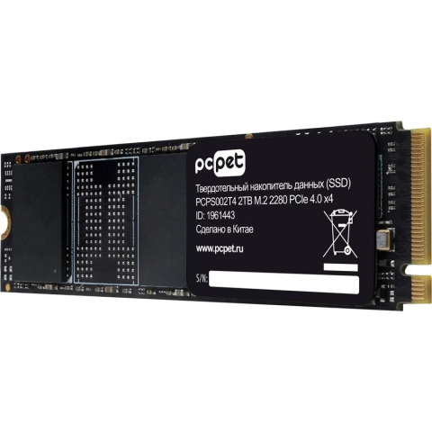 Бренд: PC PETвнутренний SSD, M.2, 2048 Гб, PCI-E 4.0 x4, NVMe, чтение: 5000 МБ/сек, запись: 4500 МБ/сек, 2280