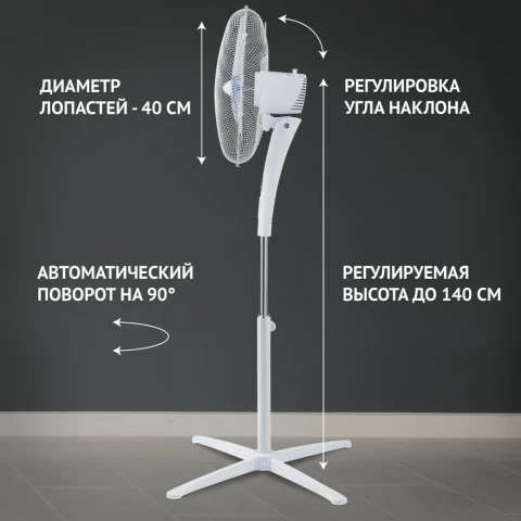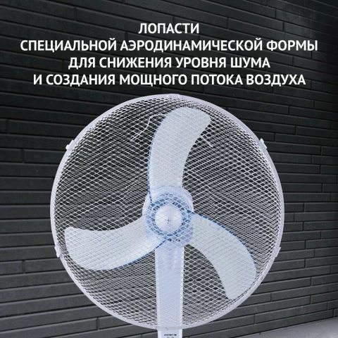 вентилятор напольный, осевой, мощность 55 Вт, поворотная система, регулировка наклона, регулировка высоты