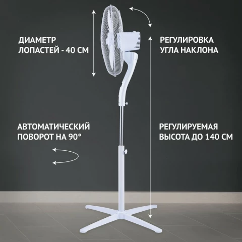 вентилятор напольный, осевой, мощность 55 Вт, поворотная система, регулировка наклона, регулировка высоты