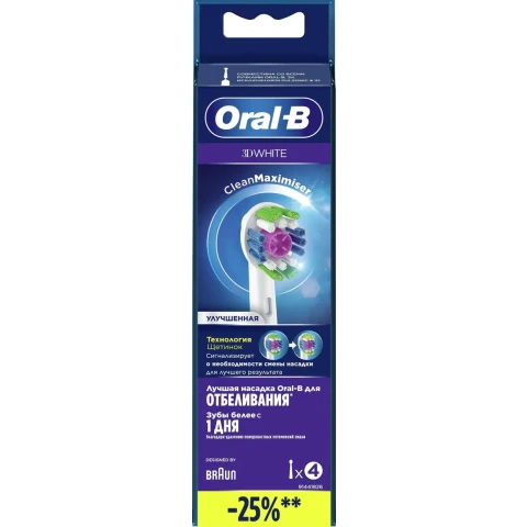 насадки для зубной щетки Oral-B 3D White CleanMaximiser, 4 шт.