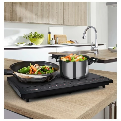 2 индукционные конфорки, электронное управление, таймер, максимальная потребляемая мощность 2800 Вт, ШхВхГ: 59.80х6.50х36 см
