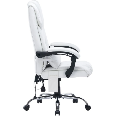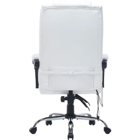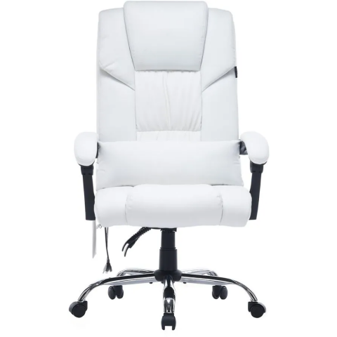 материал обивки: искусственная кожа, нагрузка до 120 кг, тип роликов: жесткие, материал крестовины: металл, особенности: механизм качания, цвет: белый