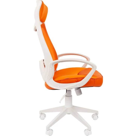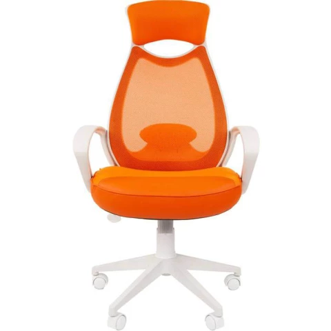 материал обивки: текстиль, нагрузка до 120 кг, материал крестовины: пластик, особенности: механизм качания, поясничный упор, спинка из сетки, цвет: белый, оранжевый