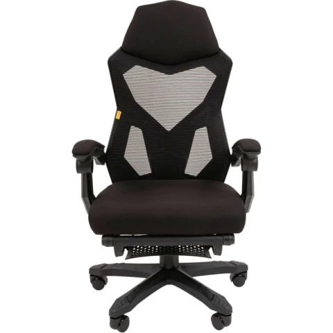 Бренд: Chairmanматериал обивки: текстиль, нагрузка до 120 кг, материал крестовины: пластик, особенности: механизм качания, спинка из сетки, подставка для ног, цвет: чёрный