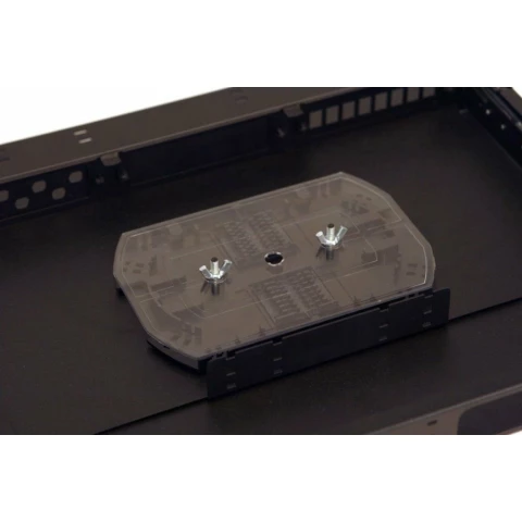бокс оптический 1U универсальный 19" выдвижной, с полкой, от 8 до 24 портов (SC, duplex LC, ST, FC), со сплайс пластиной, без пигтейлов и проходных адаптеров