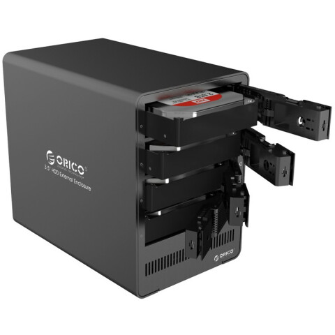 контейнер с четырьмя отсеками для HDD 3.5" SATA, максимальная ёмкость 16 ТБ (4 х 4 ТБ), интерфейс: USB 3.0, поддержка горячей замены, автоматический режим сна, в комплекте адаптер питания 12В, 6.5А
