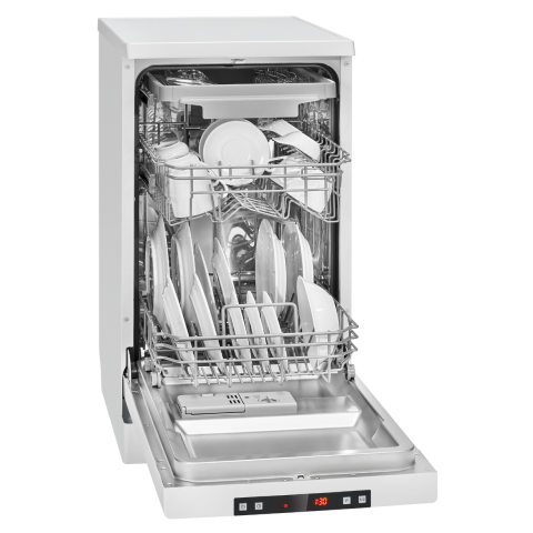 отдельно стоящая посудомоечная машина, расход воды: 9 л, электронное управление, таймер отсрочки запуска, защита от протечек