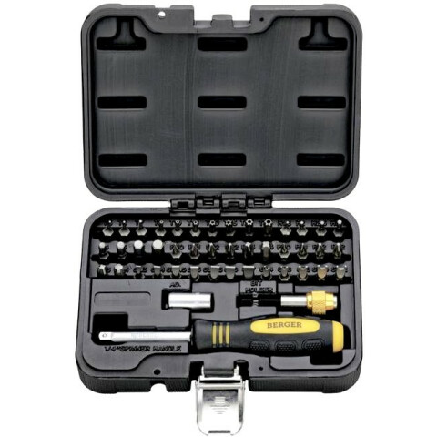 отвёртка с 42 битами/насадками (полный список см. ниже), в наборе адаптер для бит на 1/4", адаптер для шуруповёрта