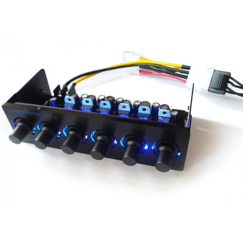 панель управления скоростью 6 вентиляторов, до 45Вт/канал, механическое управление, подсветка Blue LED (яркость светодиода контролируется ручкой RPM), устанавливается в 5.25" внешний отсек