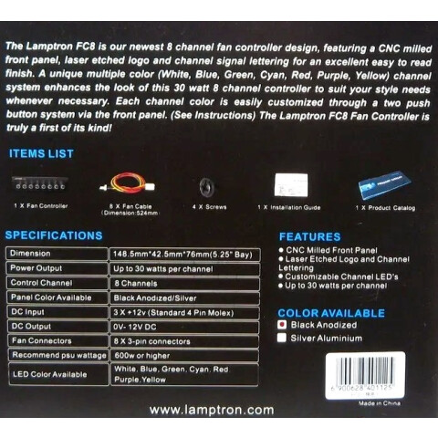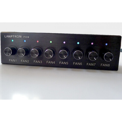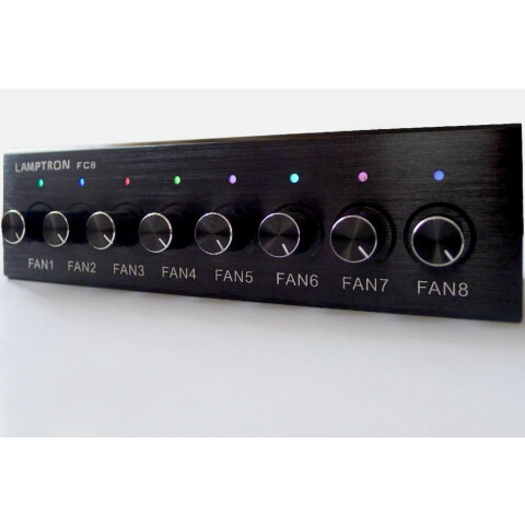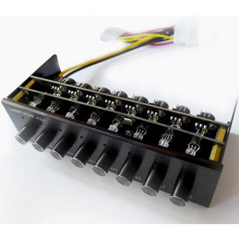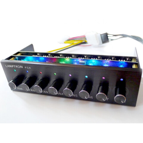 панель управления скоростью 8 вентиляторов, до 30Вт/канал, механическое управление, подсветка LED 7 цветов, устанавливается в 5.25" внешний отсек, в комплекте кабели для вентиляторов