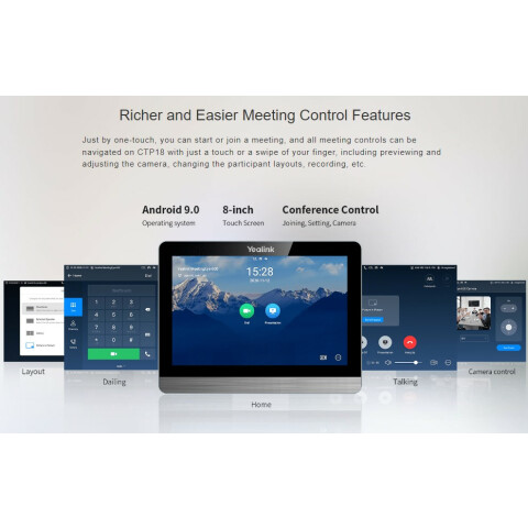 сенсорная панель управления Yеаlink CTP18 для терминалов ВКС Yealink, 8" экран 1280x800, Wi-Fi, Bluetooth, RJ-45, поддержка PoE, к одному видеотерминалу одновременно можно подключить до 4 CTP18