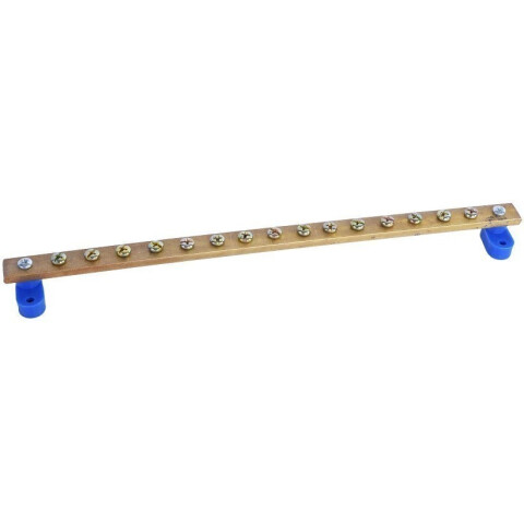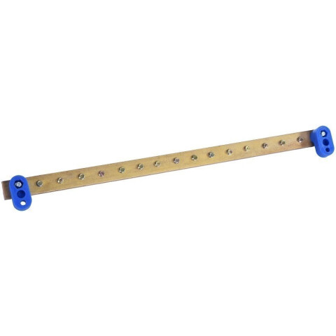 панель заземления длинной 200 мм, из латунной шины сечением 5х15 мм с нагрузочной способностью 200А, 9 точек подключения с винтами М5