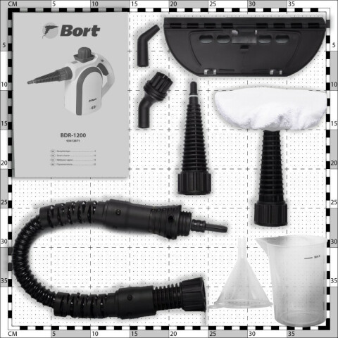 ручной пароочиститель, мощность: 1200 Вт, максимальная подача пара: 35 г/мин, время работы: 12 мин