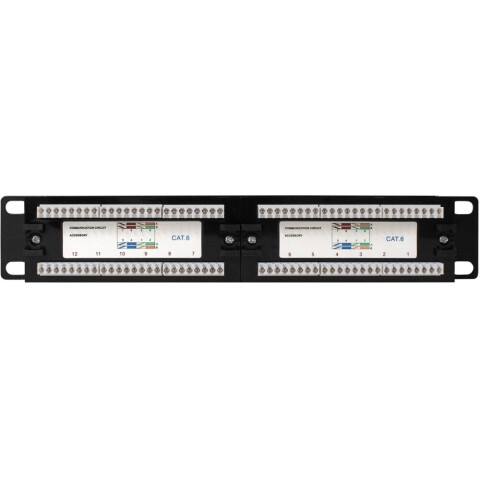 патч-панель 1U для 10" шкафов, для витой пары UTP, 12 портов, кат. 6, тип контактов: Krone, Тип 110, Dual IDC