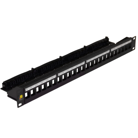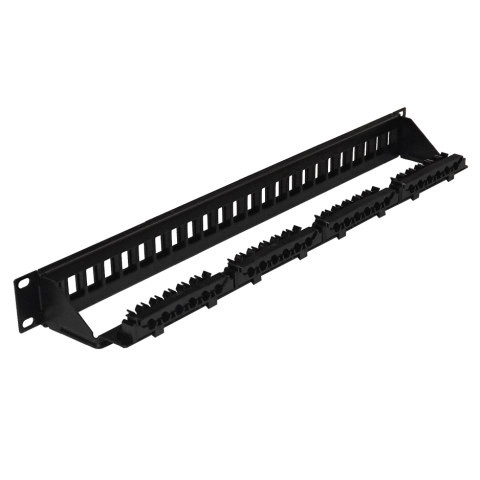 патч-панель наборная 19", неэкранированная, 24 порта, 1U, с задним органайзером с фиксаторами кабеля