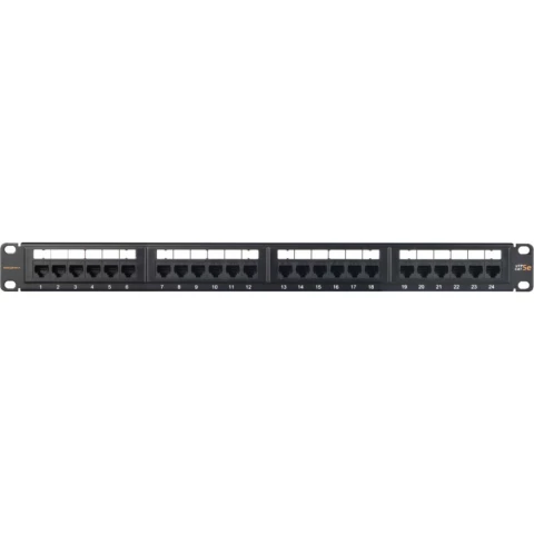 коммутационная панель 19, 1U, 24 порта RJ45/8P8C, неэкранированная, категория 5e, особый дизайн контактов также позволяет использовать для заделки кабелей ножи типа KRONE