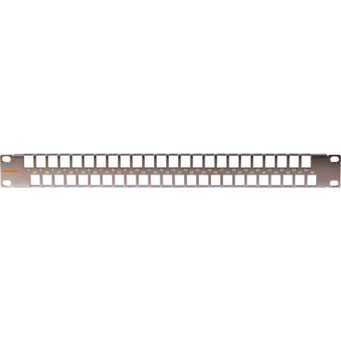 патч-панель наборная, 1U, вмещает 48 модулей формата KeyStone с форм-фактором не шире 17мм, никелированная сталь толщиной 1.5 мм