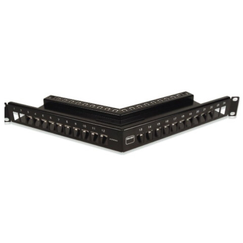 патч-панель угловая TERA-MAX на 24 модуля, 19", 1U, черная (в комплекте маркировочные этикетки, кабельные стяжки, контакт заземления, крепеж)