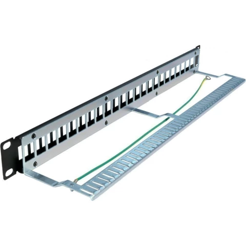 патч-панель наборная 19", экранированная (STP), 24 порта, 1U, предназначена для установки информационных, оптических, аудио, видео и прочих модулей формата Keystone