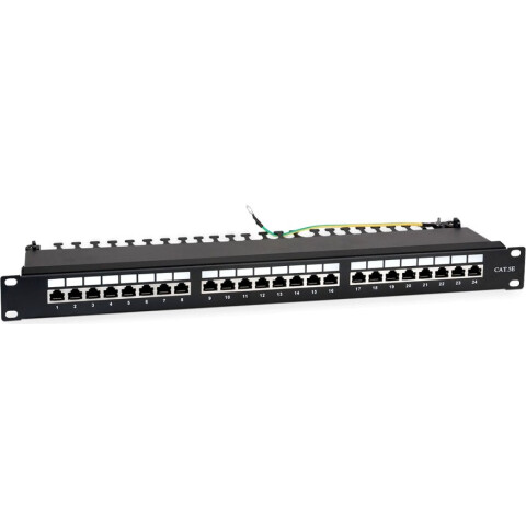 патч-панель 19"(1U), 24 порта RJ-45 полностью экранированная, категория 5e, Dual IDC, чёрный