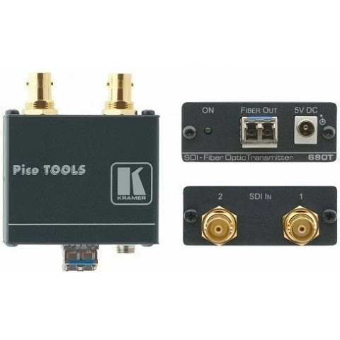 передатчик сигнала HD-SDI 3G по волоконно-оптическому кабелю; работает с приёмником 690R (тов. 657446), двухканальный, до 10 км