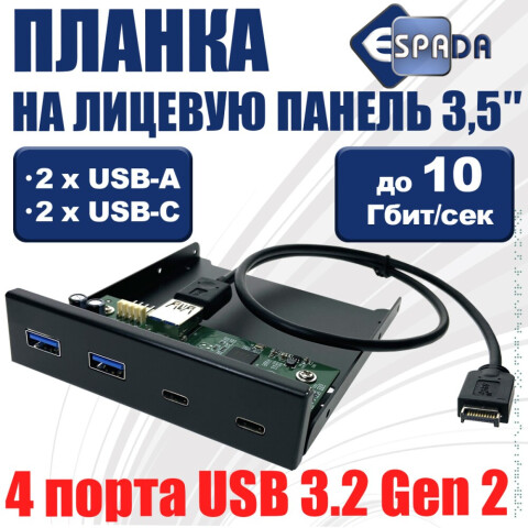 планка на переднюю панель, добавляет 4 порта: два USB-С и пару USB A 3.2 Gen 2 10 Гбит/с, устанавливается отсек 3.5" фронтальной панели