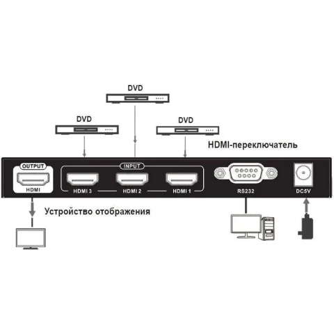 4K HDMI-переключатель аудио-видео 3xHDMI (f) - HDMI (f), 1м, ферритовые кольца, 4096 x 2160 (4K x 2K) при 60 Гц, пульт ДУ
