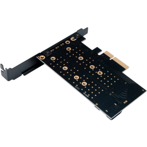 адаптер для двух SSD NVMe+SATA, интерфейс подключения PCI-e 3.0x4 (совместим с x8/x16), SATA 7pin (для подключения SSD M.2 SATA), форм-факторы M.2: 2230, 2242, 2260, 2280